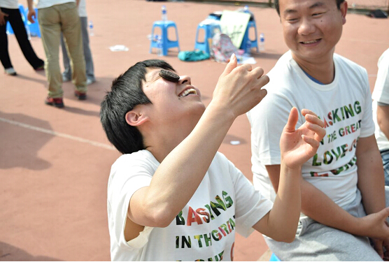 经过简短的准备活动,来自化学与分子工程学院的8个队伍的老师和同学开始了气氛热烈、high爆全场的趣味比赛项目。