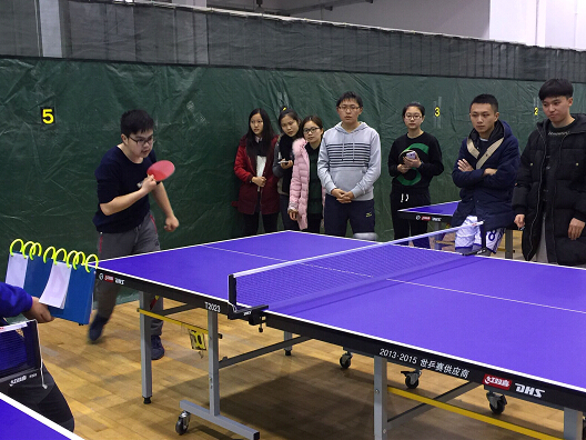 17时在体育与健康学院乒乓球活动室,我院乒乓球男团对战传播学院,女团对战生命与科学学院。女团方面尹瑶瑶率先赢下一盘;男团方面,王宁和陈子晗表现出色,取得了男子双打的胜利。最终男子团体和女子团体都以总比分2:0战胜了对手。